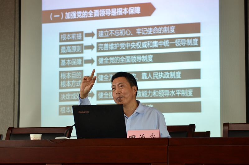 报告会上,田教授结合自身学习的体会,运用丰富的例证以及生动的语言对党的十九届四中全会精神进行了解析,从推进国家治理现代化的时代要求、主要目标、基本路径三个方面进行了分析和提炼解读,既有大视野,更有大情怀,使大家对党的十九届四中全会精神有了更深入的理解和更全面的领会。