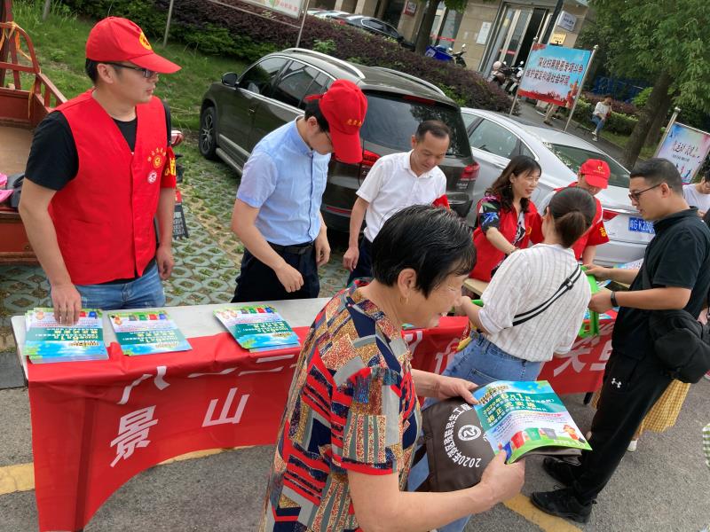 6月9日上午,我队与景山社区党员、青年志愿者联合到丽景花园城居民小区开展了垃圾分类宣传活动。队准备了《铜陵市生活垃圾分类管理条例》、环保垃圾袋和定制的宣传材料,对路过的居民和小区周边个体经营户广为发放,志愿者和工作人员耐心宣传垃圾分类的必要性,热情讲解快速识别并正确投放四类垃圾的简便方法。